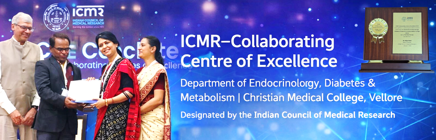 The Department of Endocrinology, Diabetes & Metabolism, Christian Medical College, Vellore has been designated as an ICMR–Collaborating Centre of Excellence by the Indian Council of Medical Research.