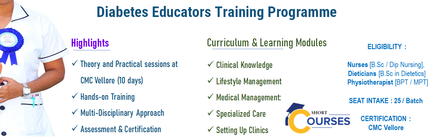 The Department of Endocrinology, Diabetes and Metabolism, CMC, Vellore will be organizing a Diabetes Educator Training Program from 4th May, 2026 to 14th May, 2026 for 10 days `with practical and theoretical intonation followed by assessment. This Training will take place at the Christian Medical College in Vellore.