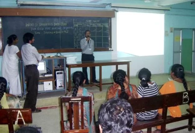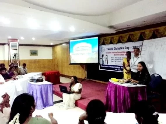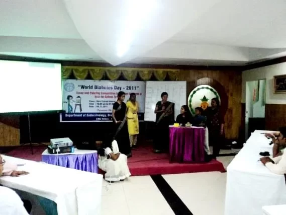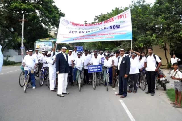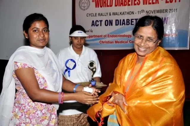 Several events were organised to mark World Diabetes Day. A general camp was held on November 8, 2011 at Cobb Hall, Voorhees College. It was attended by over 350 persons. On November 10, 2011, a quiz programme was held for diabetes care givers and more than 50 patient relatives took part in the quiz. On November 11, 2011 a cyclathon and walkathon was flagged off from Ida Scudder School by the Principal, Mrs. Renita Muthusami. Nearly 220 participants cycled from Scudder School to Don Bosco School. The participants were informed of the importance of maintaining a healthy and active lifestyle.