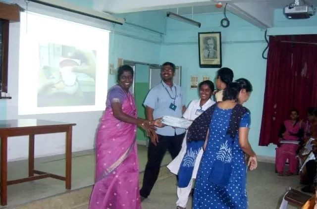 Nearly 120 students from various schools in Vellore participated in the competition which was judged by Dr. Alice Augustine, Professor of Maternity Nursing and Dr. Rekha Pai, Department of Pathology. The first prize in the competition was bagged by Dhanaseker (Voorhees School), second prize by Mrithula (St. Mary's School) and the third prize went to Angelina Sharon (Ida Scudder School). Consolation prizes went to Jasmine (St. Mary's School) and Mathumithra (Ida Scudder School). A quiz competition for school teachers was also held on November 05, 2011. The quiz was won by Mrs. Shanta Sharma and Mrs. Ananda Lekshmi (Shrishti School). The second prize went to Mr. Pragash and Mrs. Chitra (St. John's School) and the third prize was won by Mr. Bala Kumar and Mr. Syed Suheil (Government Muslim School).