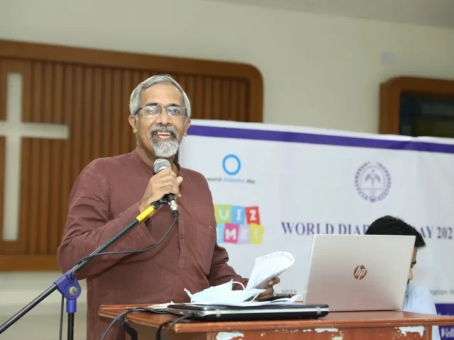 Dr Prabhakar Moses – Former Professor and head, Department of Child Health, CMC, Vellore spoke at the occasion as chief guest and appreciated the children for their sense of awareness about health and shared his vision for a better society. In addition, he spoke about the discovery of insulin 100 years ago by Banting and Best, and how it inspired the improved the longevity of patients with insulin over the last century. The very first patient with Type 1 diabetes lived till the age of 70 years. It has made a massive difference to patients living diabetes. Additionally, he made it clear that sporting activities were extremely important in terms of prevention of diabetes. Dr Prabhakar Moses himself was a talented cricketer, who at one time, played 2nd division cricket for the Scottish Cricket league several years before, bowling tantalizing leg spin!
