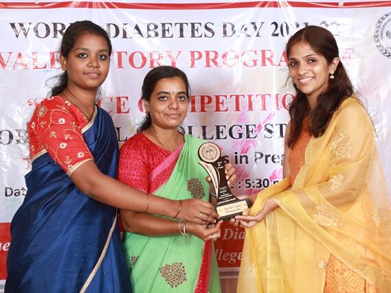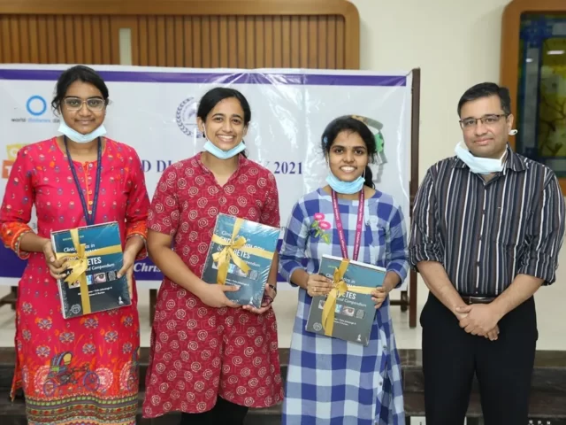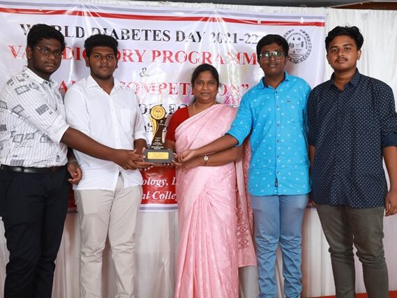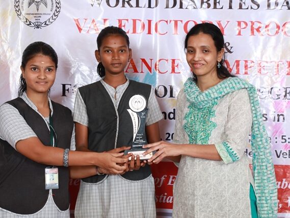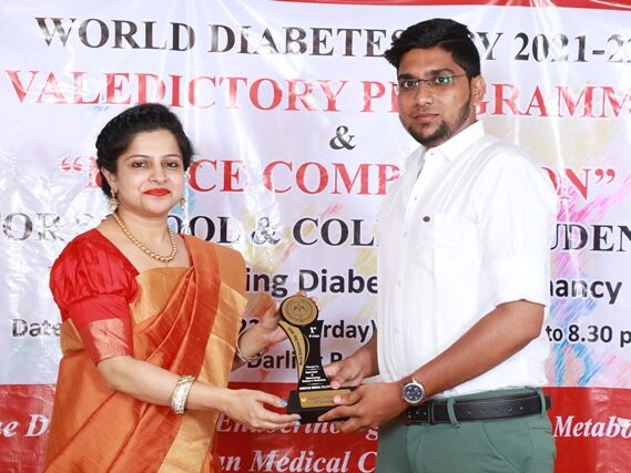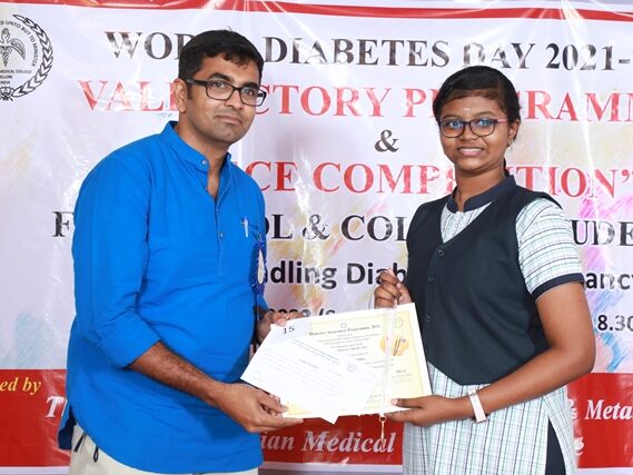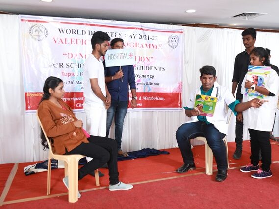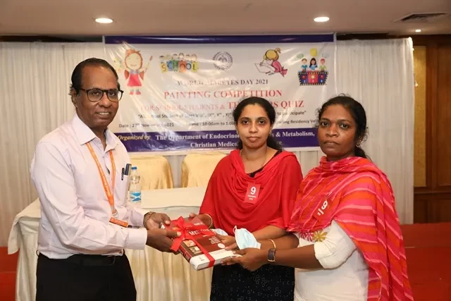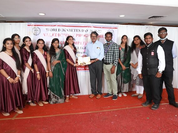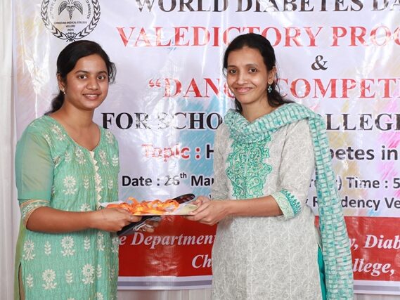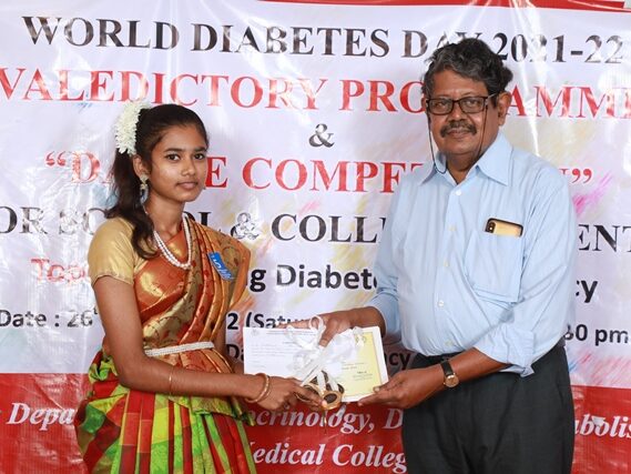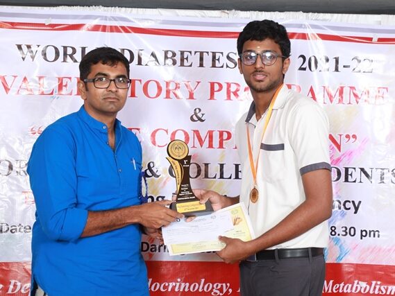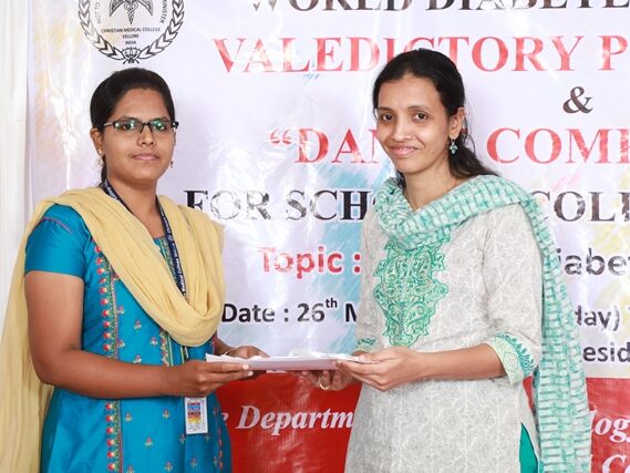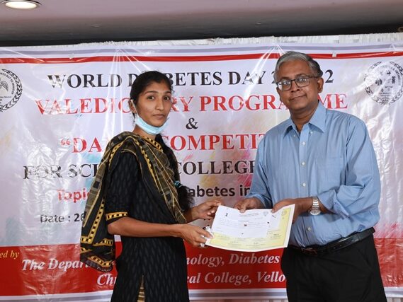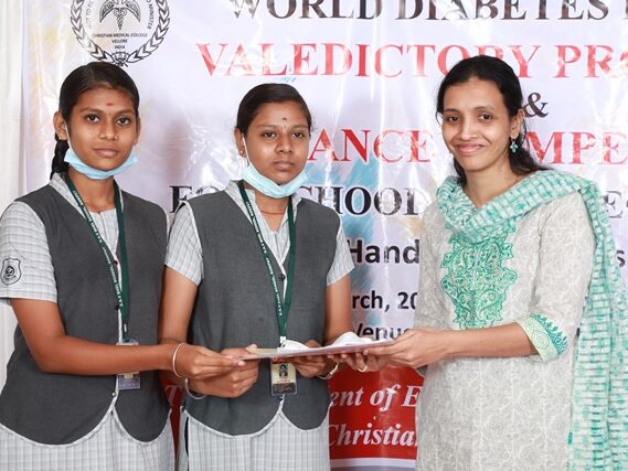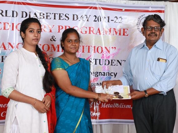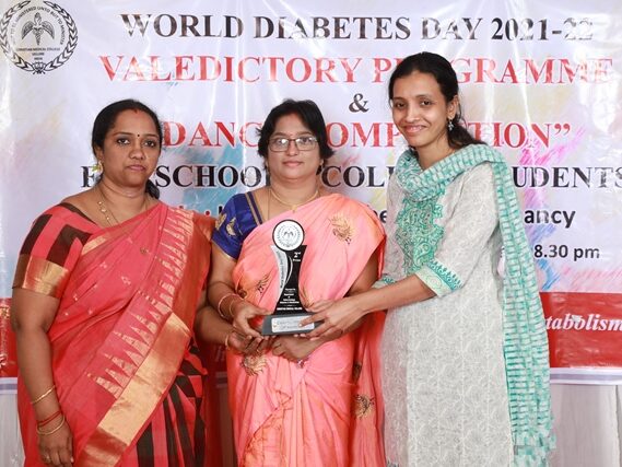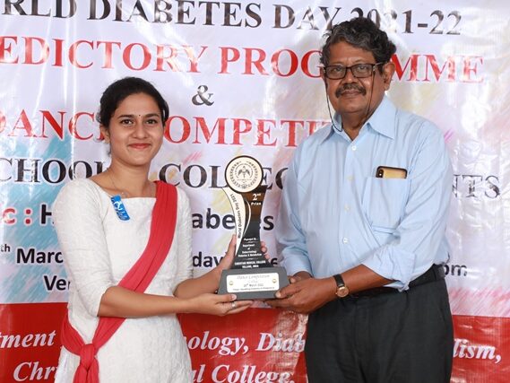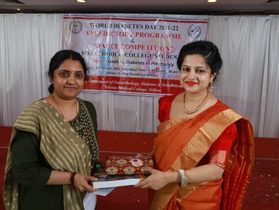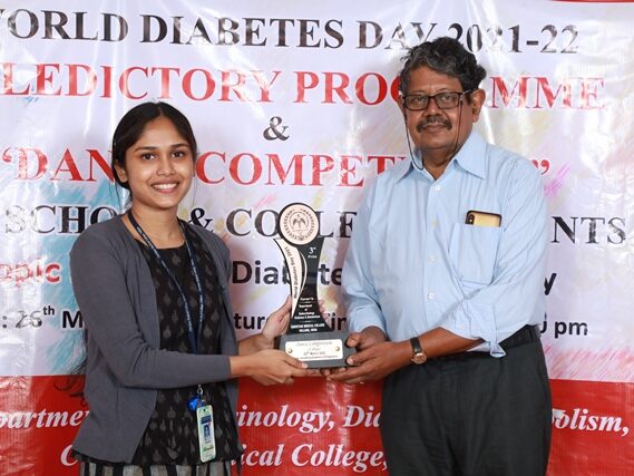 In commemoration of the World Diabetes Day 2021-220, the Department of Endocrinology, Diabetes & Metabolism at CMC has conducted a series of events namely Cookery Competition, Nursing Quiz, Medi Quiz, Painting competition, Teacher’s Quiz, Poster Competition, Slogan competition, Video clipping competition, and Self Composed Dance competition targeted towards school and college students around Vellore city from October 2021 to March 2022. In appreciation of a tremendous support we got from the people, we organized a Self-Composed Dance Competition for School & College Students Titled : Handling Diabetes in Pregnancy, at Darling Residency on 26th March, 2022, followed by a Valediction programme.
