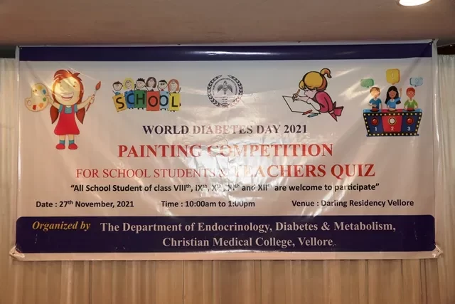 As part of ongoing activities in commemoration of World Diabetes Day 2021, the department of Endocrinology, diabetes and metabolism conducted an inter-school poster painting competition on a critical theme” The Economic Burden of Diabetes” on 27th November, 2021 at Darling Residency, Vellore.