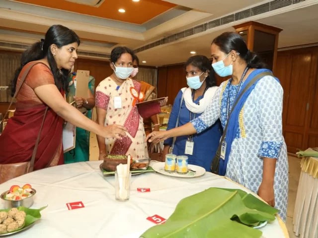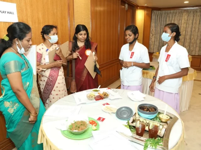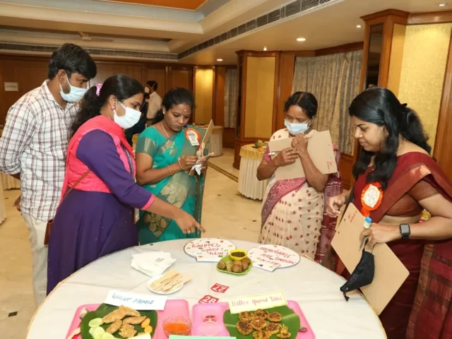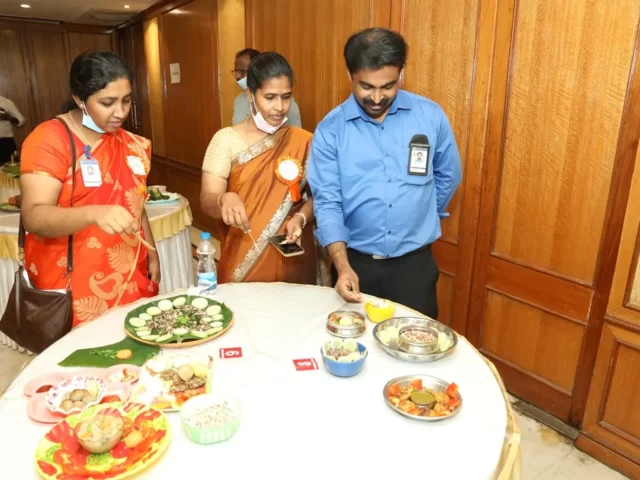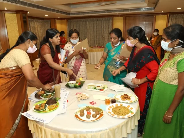 The first prize was bagged by Ms Ruth and Ms Rachel of CMC Vellore, for the recipe “D Drink, Orange Phirni, Veggites. The second prize shared by Ms.P.Chithra Priya and Brindha of Vellammmal Bodhi campus school for their recipe of Millet Kuzhi Panyaram, Bitter Gourd Tikki, Wheat momos and Spinach egg omolete and Ms. Rashm Varma and Ms. Geetha of Ida Scudder School for their Multi Millets Kuzhi Paniyaram with Peanuts and flax seed Chutney. The Third prize shared by D. Anbu and Sharmila of CMC Vellore for their Black Gram Dhal Vada, Black Gram Ball, Black Gram Sundal and Millet Kitchadi, Vishnu Priya and Kavya from DAV Bhel School for their Brocken Wheat Upma, Ragi Milk Shake, Soya Beans Cutlet and Oats Cutlet with Mint Dip