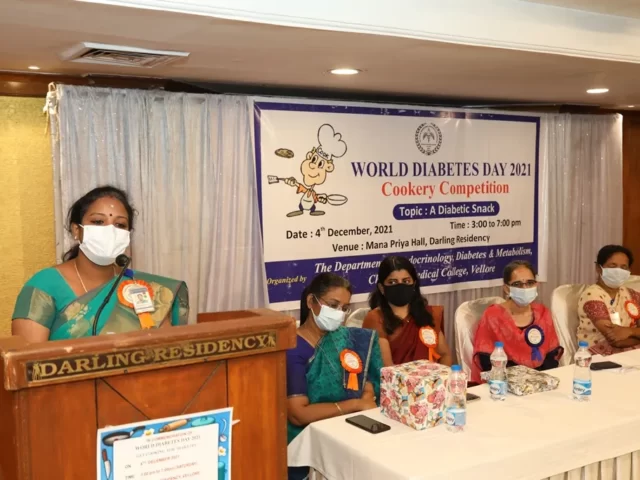The Department of Endocrinology, CMC Vellore had organized a Cookery Competition on the theme “A Diabetic Snack” on the evening of 4th December,2021, which was a melange to exhibit the culinary skills for the people of Vellore. The Chief Guest for the evening, Dr. Elsy Thomas, Professor in OG Unit-I, CMC Vellore gave a talWas the Chief Guest for the dayy diet in diabetes.