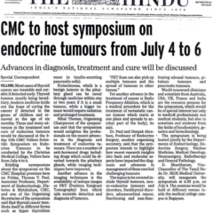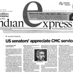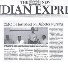 1. "CMC Vellore is hosting the 11th annual meet of the ISMBR on November 27 and 28. "Published by The Hindu, dated 26.11.20152. "CMC bags ‘Diabetes team of the year’ award (BMJ) "Published by The Hindu, dated 07.11.2015
