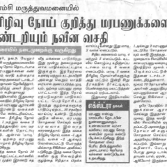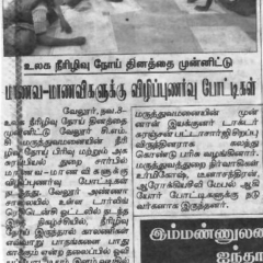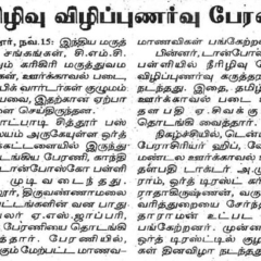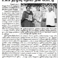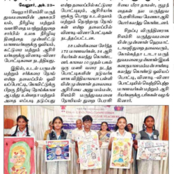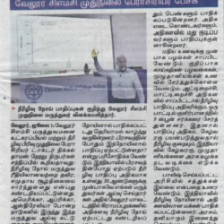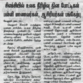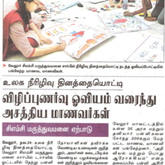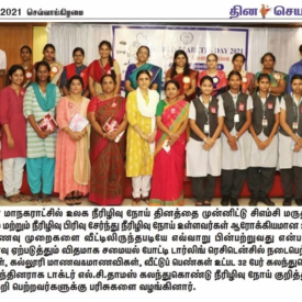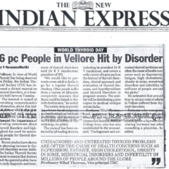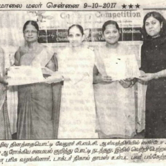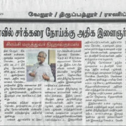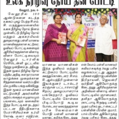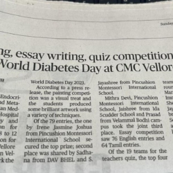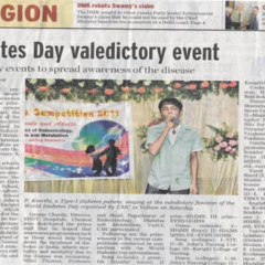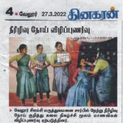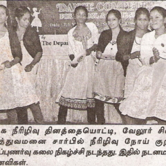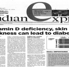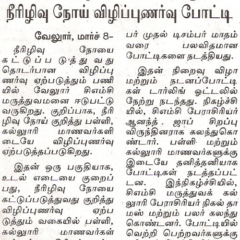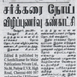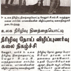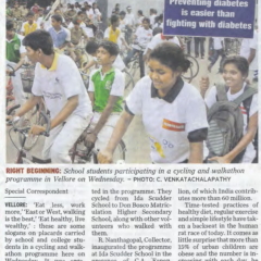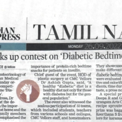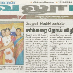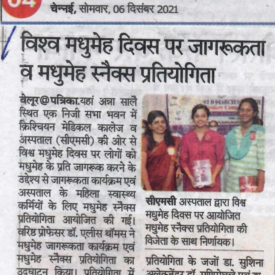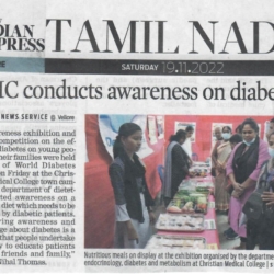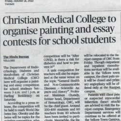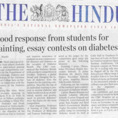1. "Students roped in for diabetes awareness drive - World Diabetes Day Painting Competition for School Students" published in The Hindu dated 10.02.2019,2. "Awareness event conducted at CMC Vellore on World Osteoporosis Day "Published by The Hindu, dated 18.10.2019