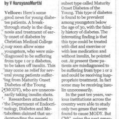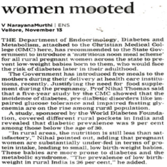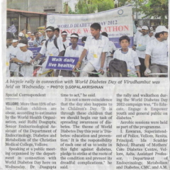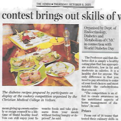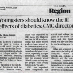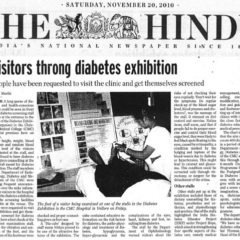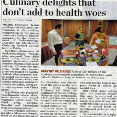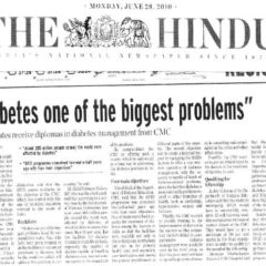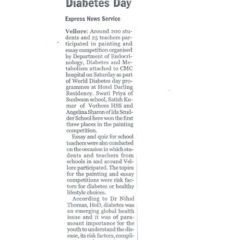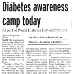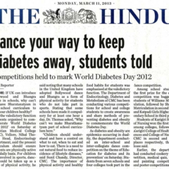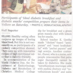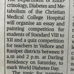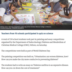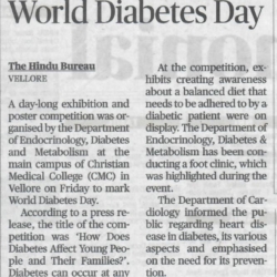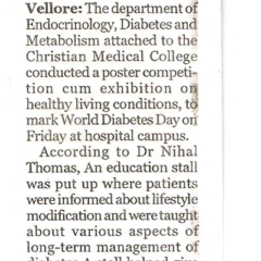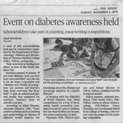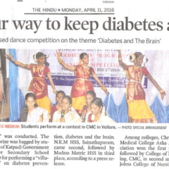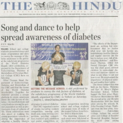 1. "Kids shake a leg to mark World Diabetes Day "Published by The Hindu, dated 22.11.20162. "CMC exhibition focuses on pregnancy and diabetes "Published by The Hindu, dated 12.11.2016