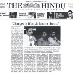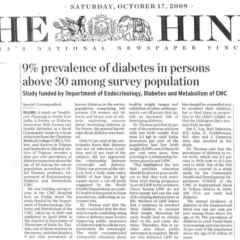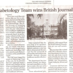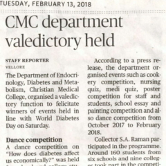 6. "CMC takes the lead to arrest spread of “Diabesity” "Published by The Hindu, dated 12.01.2015