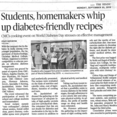 3. "Students, homemakers whip up diabetes-friendly recipes" Published by The Hindu, dated 30.09.2019