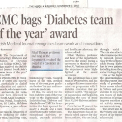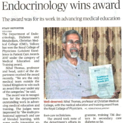4. "CMC’s Department of Endocrinology wins award "Published by The Hindu, dated 22.03.2017
