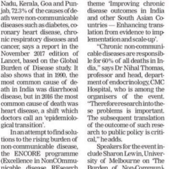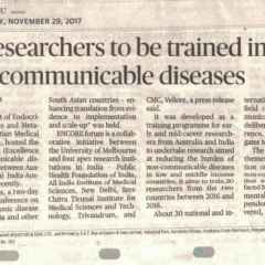 1. "20 researchers to be trained in non-communicable diseases "Published by The Hindu, dated 29.11.20172. "Expo on diabetes focusses on prevention, management "Published by The Hindu, dated 15.11.2017