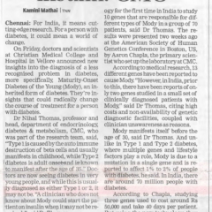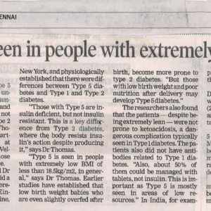 16. Access to more tests needed to identify type 5 or lean diabetes published in Times of India 02.05.2025.