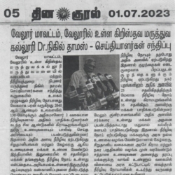 8. "வேலூரில் உலக நீரழிவு தினத்தை முன்னிட்டு கண்காட்சி நடைபெற்றது" published in Dhina Thagaval 29.11.2023.