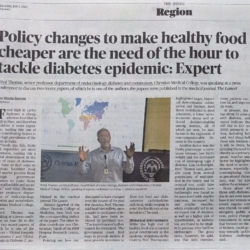 4. "Policy changes to make healthy food cheaper are the need of the hour to tackle diabetes epidemic: Expert" published in The Hindu 30.06.2023.