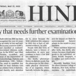 1. "Lean diabetes: reality that needs further research, says study" published in The Hindu dated 26.05.2022,2. "Research Reveals Secrets of Baffling but All-Too-Common Type of Diabetes"Published by Albert Einstein College of Medicine, dated 02.06.2022