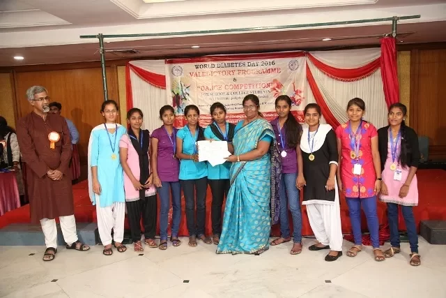 In commemoration of the World Diabetes Day, the department of Endocrinology, Diabetes & Metabolism at CMC has conducted a series of events namely Cookery Competition, Nursing Quiz, Medi Quiz, Essay Writing Competition in English & Tamil, Painting competition, Teacher’s Quiz, Exhibition & Poster Competition, and Self Composed Dance competition targeted towards school and college students around Vellore city from September 2016 to April 2017. In appreciation of a tremendous support we got from the people, we organized a valedictory function to felicitate the deserving winners in each event.