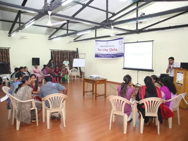 In Commemoration of World Diabetes Day 2016, the Department of Endocrinology, Diabetes and Metabolism conducted a Dia-Quiz on "Diabetes and Endocrine Disorders" for Nursing Students at College of Nursing, CMC Vellore on October 11, 2016. Mr. T.S. Ravikumar, Professor & HOD of Accident & Emergency Nursing, was the Chief Guest for the day.