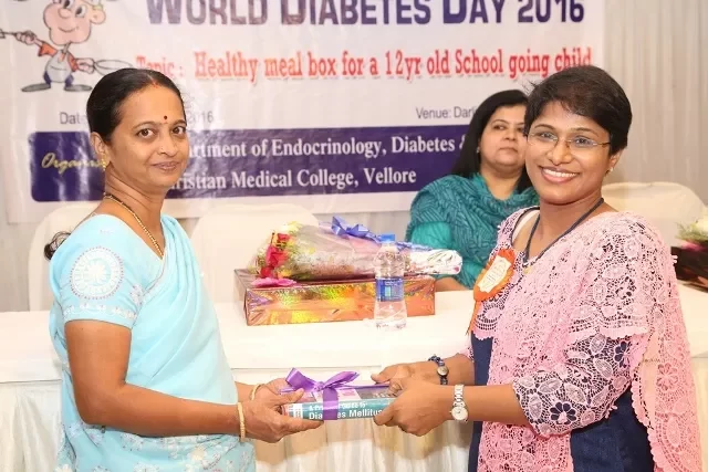 In commemoration of World diabetes day, the Department of Endocrinology, Diabetes Metabolism, CMC Vellore, organized a Cookery Competition on the theme “ Healthy meal box for 12 year old school going children. It was an excellent opportunity to showcase how a mother’s innovative idea in making a healthy meal box can please the appetite a 12 year old school going child in addition to meeting the nutritional requirements.