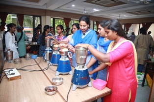 The first prize was awarded to Ms. Durga Devi and Ms. Sharmila from Sri Narayani College of Nursing for their delicious Jowar Millet Carrot Kuzhi Paniyaram and Kuthiraivali millet Kichadi. The first runners-up were Ms. Srisha and Ms. Bhava Dharani from DKM College, who presented an Apple Pie Tart and Drumstick Pulpy Soup, and Ms. Sangeetha K. and Ms. Priya B., teachers from Lakshmi Garden School, Vellore, for their Veggie-loaded Jowar Thalipeeth. The second runners-up were Ms. Uma Maheshwari and Ms. Nithya from CMC Vellore.
